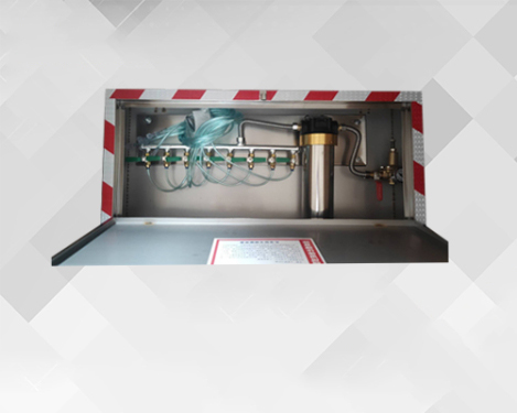 矿用压风自救装置包括箱体,箱体上设有压风接头,其内设有多组分别与压风管相连的呼吸器,每组呼吸器的支管上均设有手动进气阀。当作业场所发生有害气体突然涌出、冒顶和坍塌等危险情况时,现场人员来不及撤离,可就近利用压风自救装置实行自救。打开门盖,取出呼吸面罩带上,钮开进气阀,通过供气量调节装置对压风管路提供的压风根据需要进行调节,再通过气动减压阀,进行减压和消除噪声,然后由积水杯将不清洁的压风变成清洁的呼吸空气,供给现场人员呼吸,达到稳定情绪、实现现场自救目的。该装置结构紧凑,使用方便,具有广泛的实用性。